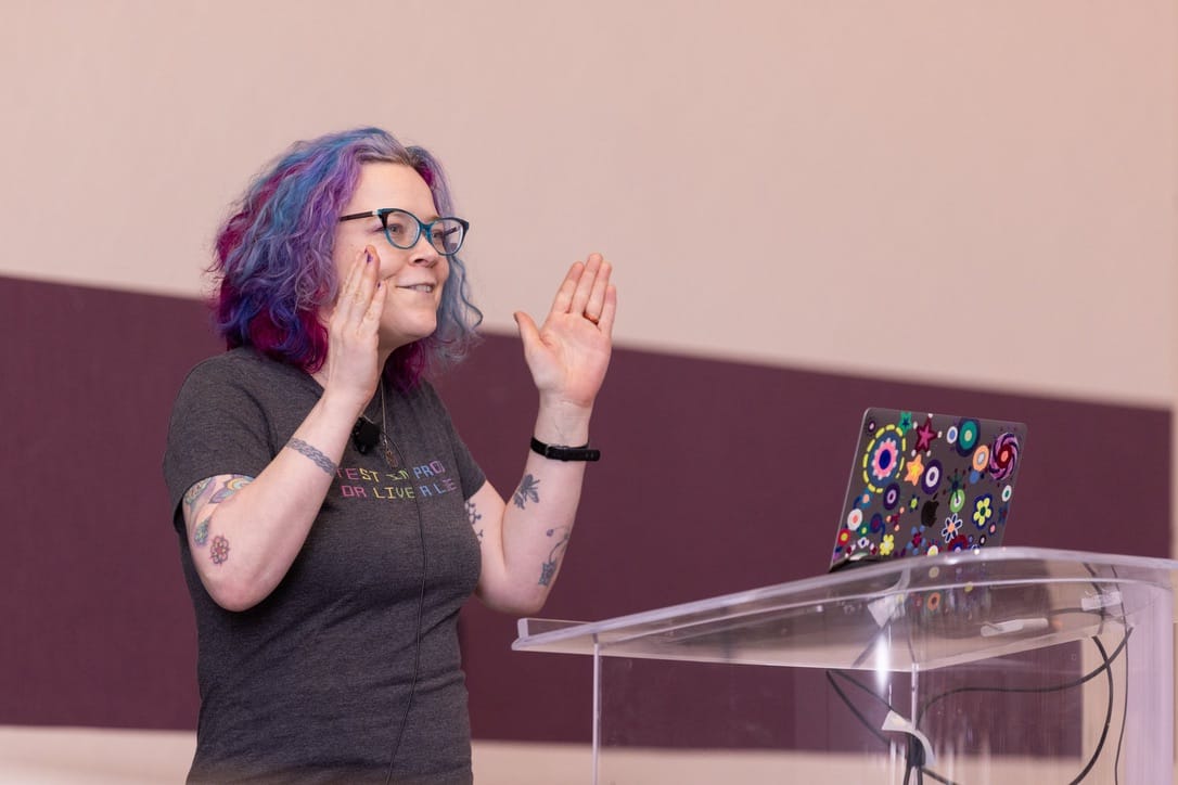 One thing I would say is that for women or any historically marginalized groups in tech: you stand out, and you're going to stand out no matter what you do, but this isn't always a negative thing, right? It is so much easier if you're a woman and you want to speak at conferences, oh my god, people want to have you.