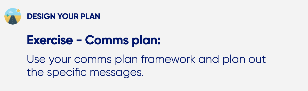 So, the next exercise is about putting your comms plan into practice and planning out the specific messages.