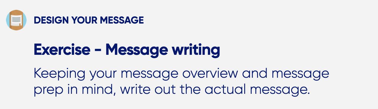 So now that you've done your message overview (with target audience, channel and goals & outcome) and the message prep (with key information and flow of information), use that to write out the actual message.