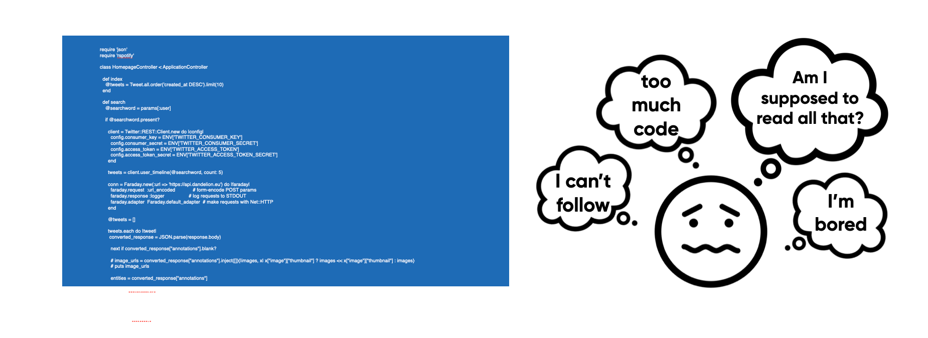 Another way slides can be distracting is when there’s just too much going on in them. This is an extreme example, but I often feel that people want to use all the space they can on a slide, making things super busy and much harder to process.